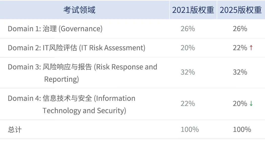 CRISC 2025新版考试内容权重调整